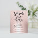 En metallfolie av chic och luxuriös ro-glitter med metallfolie av guld med kalligrafi av elegant för en bröllop spara datum.
