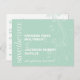 En mjuk bild av blommigten snurrar ut gör att en vattenstämpel mot den här akvatiska färgaden sparar datumet på vykortet. Orden "spara datumet" springa lodrätt i en klassisk typbehandling för att förskjuta din anpassade text. Grafikobjektet upprepas på baksidan tillsammans med mer detaljerad text. Finns i alternativ färg med matchande produkter.