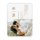 Photo Bröllop spara datum. Modern. Contemporary. Monogram. Vita och guld. Magnet. Webbplats.