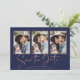 Blått konsthandskrivet Ro Guld Spara datumfotonskortet Många i ett typsnitt som är elegant och framkallar en romantisk handskriven känsla. På baksidan finns ett trendig, en geometrisk konsthugg deka stil-design i chic ro guld-folie på marin blå bakgrund. Designad för använda av tre av dina favoritfoton för ytterligare anpassning. Lägg enkelt till namn och data för en verkligt personlig. Kontakta oss på cedarandstring@gmail.com om du behöver hjälp med designen eller matchande produkter.