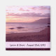 En underbar solnedgång i rosa på stranden på Hawaii. Äkta vågar och mjukt sand. Anpassa med datum för namn och bröllop efter behov.