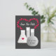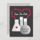 Perfekt för älskare Den här romantiskt roliga designen har en bägare med rött hjärta, provrör och kolv. Röda bubblor bildar ett hjärta. Anpassa den med din egen unika text. Underbar för spara datum meddelande, möhippor, party och Valentines day på årsdagen. PinkInkArt-original!