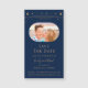 Mystical Blue Guld Sol Måne Star Space Sparar datumet magnetfunktioner från sol, måne och stjärnor ram på mörk blått bakgrund. Inuti finns ditt favoritfoto och din anpassningsbar sparar datuminformationen. Anpassa genom att redigera texten i textrutorna. Designad för dig ©2022 Evco Studio www.zazzle.com/store/evcostudio