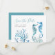 Meddela din förlovning med mina andra meddelanden än fotot spara datuminbjudningarna med Spara datum i ett trendig-skript typografi stil som framkallar utseendet på handskriftsbokstäver. Det här enkla kortet innehåller en kopia av mina originalhandmålade vattenfärgssjöar och korall med namn, bröllop datum och bröllop. Kort som går tillbaka till komplementär fast turkos blå färg. Perfekt för Seaside Cape Code Bröllop, Coastal New England Beach och Maryland destinationsbröllop. Om du vill se motsvarande bröllop-svit besöker du DotellABelle på Zazzle.