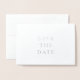 Spara datum för Sleek Silver & White Monogram Folierat Kort