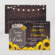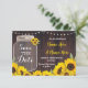 Spara datum Rustic Wood Sunblommwers Burk Inbjudan, perfekt för att informera dina gäster om ditt evenemangsdatum! Matchar objektet till samlingen! Inkluderad framsida och baksida.