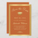 Skicka din familj och dina vänner en elegant studenten spara datum meddelande med en orange bakgrund med fuax guld calligraphy och guld grad cap intill guld ram. Anpassa med din studenten-information. Designad av Susan Coffey.