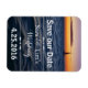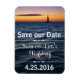 Ett modernt val av avslappnad i bröllop spara datum, denna utformning fungerar bra för kust- eller destinationslandskap eller bröllop med ett nautiskt tema. Det samordnar sig med inbjudan till Sunset Sail Nautical Wedding. Redo att anpassa med din specifika information.