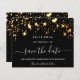 Ett giftigt och trendig Spara datumkortet för en 40:e (eller någon annan ålder) födelsedagsfest. En svart bakgrund med faux guld-stjärnor. Anpassa och lägg till datum och namn/ålder 40. Texten: Spara datumet skrivs med ett stort trendig-handskript i stil.