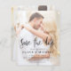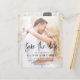 Budgettransparens som täcker foto på anpassningsbar och personlig på framsidan och baksidan av eleganten och modern Spara datumbröllopsinbjudningar - innehåller vacker och elegant skripttypografi för den speciella Bröllopsdagen firande.