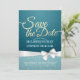 Elegant Guld Handskrivet typografiskt skript med Vintage turkos och vitt menyfliksområde Spara datumkortsmallarna. En Perfekt för din stora dag! Alla textstorlekar i Stil, Färg kan anpassas efter dina behov.