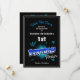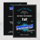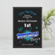 En underordnad födelsedagsfest som du kan anpassa med hjälp av funktionen "Anpassa den här mallen" på högerna. Coola blå och vit typografi på en svart bakgrund med ljusblå roligt grafik. Alla uppgifter kan anges på baksidan.