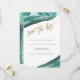 Den här eleganten, modern spara datuminbjudningarna, innehåller vattenfärgade tealgeodestenar, med faux guld typografi och stänk.