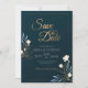 Ett formellt och elegant spara datum tillkännagivande med guldbokstäver och vita blommor mot en mörk bakgrund. Kortet är lätt att anpassa med din text, teckensnitt och teckensnittsfärg. Inte exakt vad du letar efter? Alla våra produkter kan utformas för att möta dina behov utan extra kostnad. Kontakta oss helt enkelt på askpixieprints@aol.com. Koordinerande produkter finns tillgängliga på begäran.