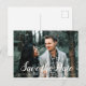 Imponera dina gäster med en snygg och elegant spara datum fotokort! Denna design har en överlagring med ett script-teckensnitt och platshållare för ditt anpassade foto och text.