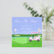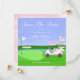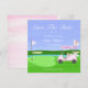 Den här golfinspirerade bröllopsdusch-inbjudan är designad med den blivande bruden i centrum. Den har en hjärtformad putting green och en flaggpinne som fladdrar i vinden, prydd med orden "Bride to Be". Golfbilen är festligt dekorerad med champagne, presenter, en tiara och en utsökt illustrerad bröllopsdusch-tårta. En brudslöja är elegant nedfälld från golfbagen och tillför en charmig detalj. Designad av Daphsam, kommer denna unika inbjudan med en lättanvänd mall för att säkerställa en stressfri planering.