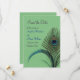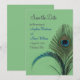 En elegant påfågelfjäder dekorerar inbjudan på gröntens bakgrund. Fjäderns högdagrar framhävs med namn i bruden och groomen i en djup turkos. Det visas på den grundläggande pappra, men jag rekommenderar att pärlkortaren är papper för att visa luddarnas härlighet. Det här datumet är en del av Eleganten Peacock i fullt och finns även i gult, lila och turkos.