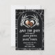 Foto skelett hjärta händer Spara datum Rustikala gotiska kort, perfekta för att låta dina gäster veta ditt evenemangsdatum! Matchande artikel till kollektionen! Fram- och baksida ingår.
