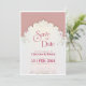 Meddela din speciella dag med detta eleganta Spara datum bröllopskort, med en mjuk rosa bakgrund, ömtåliga vattenfärg blommor och en graciös bågformad design. Den förfinade typografin lägger till en tidlös och romantisk touch, perfekt för både klassiska och moderna bröllop.