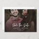 Elegant fotobryllop spara datum-kort. Kortet har ett script "Spara datum", som kan ändras till en typsnittsstil efter eget val i vårt designverktyg. Lägg till ditt favoritfoto genom att använda "Personifiera"-knappen.