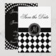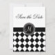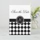 Spara datum-kort med Harlequin-mönster och monogram. Anpassa med ditt monogram på framsidan och all din personliga information på baksidan av kortet med hjälp av Zazzles lättanvända menyer.