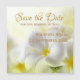 Söt plumeria Hawaiian sparar datumet bröllop magnet. Plumerian för vit och gult är den tropiska blomman med textmall för personlig för namn av paret, bröllop-datum och öar för att hjälpa gästerna att planera för transport till eller mellan öarna.