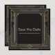 Elegant och snyggt guld art deco gräns på den texturerade svarta bakgrunden "Spara datum"-kort som kan anpassas.