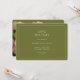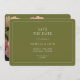Modern och chic. Det här vackra bröllop spara datum-kortet har en vacker bukett av vulöst ro mot en chic oliv grönt bakgrund längst bak, medan framsidan lämnas ren med en uppsättning contemporary typsnitt i vitt.