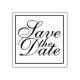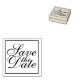 Elegant bröllop Spara datumgummi Frimärke med frasen "Spara datum" i elegantens kalligrafteckensnitt stil med kvadratgräns.