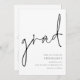 Modern Script Studenten Grad sparar datumet. Tillgänglig digitalt och utskriven. Den här enkla monokroma designen har ett informellt handskriftsskript i stil för huvudrubriken, graden och gör det enkelt att anpassa typografin till grund högernas sida med dina detaljer. Du kan ändra till valfri Färg med hjälp av redigeringsalternativet.