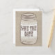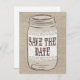 Det här rustika, vintageinspirerade Spara datum-kortet med murarburk är perfekt för din countryinspirerade bröllop. Det kombinerar subtila texturer av en juteimitation bakgrund med ett delikat snöremimitation band runt murarburken. Anpassa din information på baksidan av kortet.