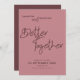En modern informell design för att be dina gäster att spara bröllop-datumet i dammig ro med ett handskript för stil mörk rosa som anger ett skript för Bättre tillsammans i mitten för att samordna med "och" i samma set-skript mellan namn. Resten av texten kan lätt bli personlig. Den mörkare dammiga bakgrunden i ro är på baksidan. Text- och bakgrundsalternativet färg kan ändras till ett annat färg om du vill med hjälp av alternativet Anpassa ytterligare.