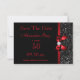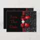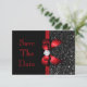födelsedagsfesten personlig Spara datumkorten. Elegant anpassningsbar svart och röd dubbla i färger, platt sparat datumet med en vacker, glatt utskriven bild av svarta sekvenser i glitter, mönster, söta, glansigt utskriven röd vektorbild med rutor och rosett band och söt, snyggt med tryckt bilddiamanter på vitlar och guld färg med svart bakgrund. Dessa glamorösa, moderiktiga kort dekoreras på båda sidor och trycks på valfri papper inbjudan. Vackert, chic, trendig, modern dubbla sidade kort med giglitz och glamor. OBSERVERA: Det här är platt tryckt grafik - inga riktiga bogar, sekvenser eller diamanter. Text, teckensnitt och färg i teckensnitt kan anpassas efter dina behov. Om du behöver hjälp med att anpassa produkten kontaktar du mig genom min butik. Jag kommer att vara lycklig för att hjälpa till.