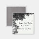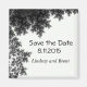 En klassdesign med vit bakgrund med svart grenar och löv överst och i hörnet. Anpassa med namn och datum efter behov.