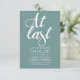 Spara datum-inbjudan 'Äntligen'. Perfekt för utomhusbröllop! Använd alternativen Anpassa och Anpassa efter dina behov för att ändra text, färger, bilder osv. Ta enkelt bort den randiga bilden på baksidan av inbjudan för en mer klassisk look. Om du har några frågor om denna design, vänligen kontakta oss. Andra färger tillgängliga.