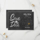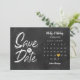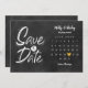 Det här bohemiska kortet för att spara datum har en kalender och ett vackert guldhjärta som markerar ert speciella datum på en kritbräda-bakgrund.