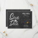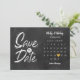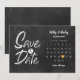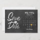 Det här bohemiska kortet för att spara datumet har en kalender och ett vackert guld kärlekshjärta som markerar ditt speciella datum på en svart tavla bakgrund.