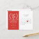 Detta vackra spara datum-kort har en kalender och ett vackert rött kärlekshjärta som markerar ditt speciella datum. Baksidan har ytterligare detaljer om spara datum, inklusive din bröllopswebbplats, med din returadress och utrymme för din mottagares adress.