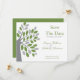 Meddela din kommande bröllop med våra Spara datum-kort med ett vackert grönt träd. Lägg bara till din bröllopsinformation så är du redo! Matchande frimärken och kuvert tillgängliga i vår butik. Även tillgänglig ...matchande bröllops- och brudshower-inbjudan.