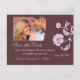 Vackert Spara datum-kort. Anpassa med ditt foto och bröllopsdetaljer för ett modernt och elegant sätt att låta dina gäster veta att de ska "spara datumet" för ditt kommande bröllop!