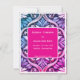 Spara datum bröllopskort rosa/blå design. Framsidan visar rosa/blå blommor . Baksidan i rosa/blå blommor innehåller de personliga detaljerna om det planerade kommande bröllopet.
