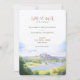 Meddela bröllop med elegantens vattenfärgsmål "Spara datum"-kort, med en fängslande bild av Loire Valley, Frankrike. Kortet visar en delikat blandning av pastellnyanser, t.ex. himlar blå, lush grönt, mjuk lavender och varm beige. Vattenfärgsgrafiken fångar på ett vackert sätt den stora Fransken av en schateau och det typiska landskapet, och frammanar en känsla av romantik och sofistikering. Perfekt för par att planera ett destinationsbröllop, det här kortet anger tonen för ett oförglömligt firande. Anpassa med din bröllop-information om du vill ha en tidslängd och ett charmerande första intryck.