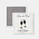 Anpassad design med ditt eget spara datum magneter med briden och brudgummens namn och bröllop. Färgfullt vin-glas med snabb bakgrund.