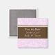 Spara datumet, dammmagnet som är märkt med rosa bakgrund och chokladaccent. Copyright © 2009 PixDezines.com och PixDezines på zazzle.com