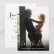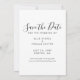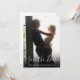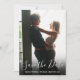 Detta enkla, moderna manusfoto för spara datum-kortet visar ert speciella foto överlagt med ett manus för spara datum ovanför era namn, datum och lokal i vit text.