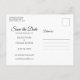 Baksidan har ytterligare detaljer för spara datum, inklusive er bröllopswebbplats, med er returadress och utrymme för mottagarens adress. Designad av Thisisnotme