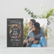 Detta boho-foto spara datum-kort har ditt speciella foto och strängljus över en fin masonkruka som innesluter ditt meddelande om att spara datumet ovanför dina namn, datum och lokal på en svart tavla-bakgrund. Designad av Thisisnotme