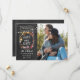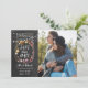 Det här boho-fotot på spara-datum-kortet visar ditt speciella foto och strängljus över en snygg masonkruka som innesluter ditt meddelande om att spara datum ovanför era namn, datum och lokal på en rchalkboard-bakgrund. Designad av Thisisnotme