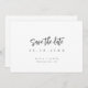 Modern minimalist sparar datumkorten med handskrivet skript och snyggt sans serif-teckensnittsuppgifter, i svart och vitt färg, enkelt och elegant. Underbart tack för det moderna klassiska bröllop, det enkla formella bröllop, elegantens minimalistiska bröllop. Anpassa den med det teckensnitt färg som du väljer. Visa alla matchande biet i samlingen.