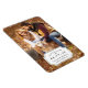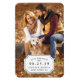 Elegant och enkelt spara datum magneter med rundade hörn har ett porträtt-orienterat fullt-utfallsfoto. "Spara datumet", visas ditt bröllop-datum, namn och bröllop i en klassisk svart text på en vit tonad rektangel inslag accentuerad med en liten blomning. Ett unikt och underskattat val för sofistikerat par.